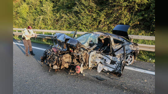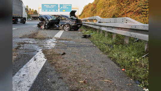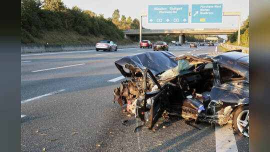 Bei einem Unfall auf der A8 bei Pforzheim-Nord ist am Samstagabend gegen 18 Uhr ein Mann lebensgefährlich verletzt und ein Auto komplett zerstört worden. Eine kurzzeitige Vollsperrung der Autobahn war die Folge.