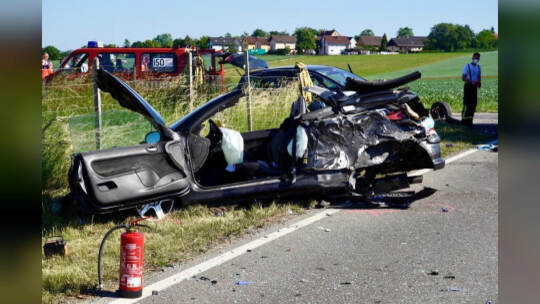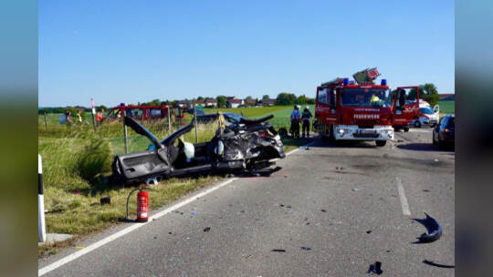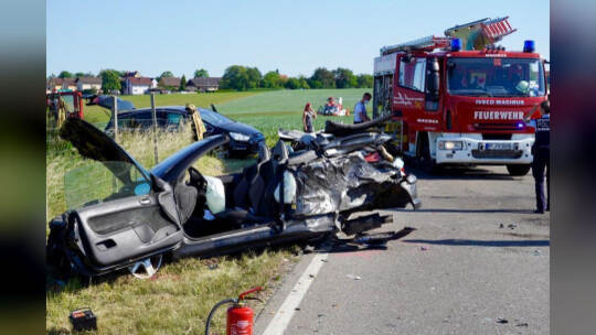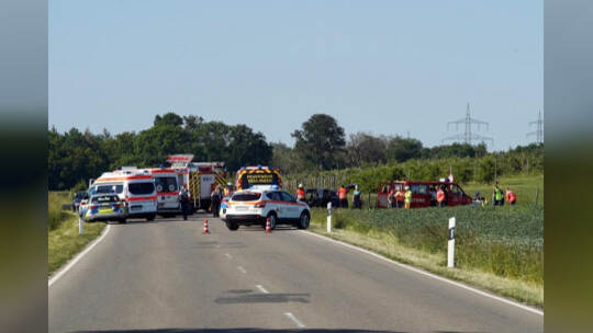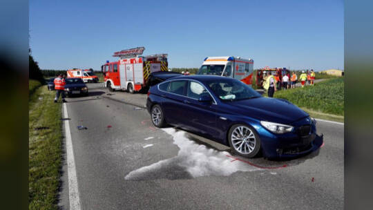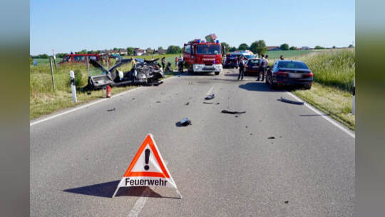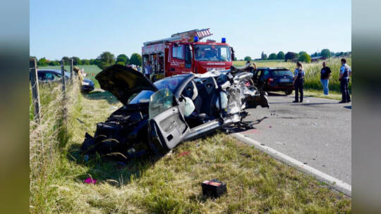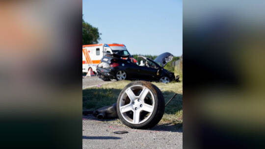 Zu einem schweren Unfall mit drei Fahrzeugen und insgesamt zwölf Verletzten ist es am späten Montagnachmittag auf der Bundesstraße 294 bei Bauschlott in Richtung Bretten gekommen. Fotos: Moritz