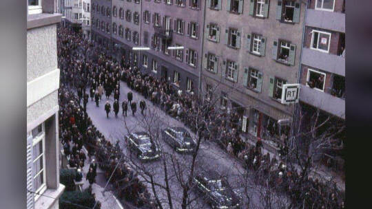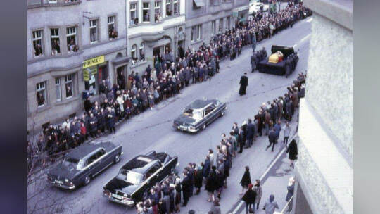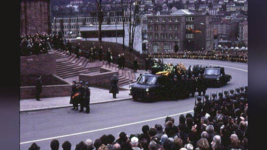 In Pforzheim verabschiedeten sich die Menschen am 28.02.1967 mit einen Staatsakt von Politiker Fritz Erler. Fotos: H.Speier