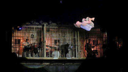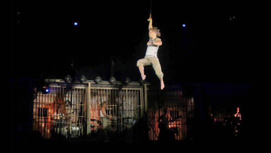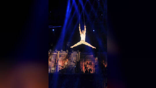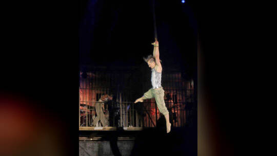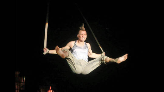 Die Abendvorstellung des Zirkus „Flic Flac“ hatte am Mittwochabend noch nicht einmal richtig begonnen, als ein erneuter Unfall das Publikum erschütterte. Der Strapaten-Artist Viktar Shaniova verfehlte bei einem Sturz von einem Balkon die am Bühnenboden platzierte Fangmatte und zog sich leichte Verletzungen zu. Fotos: Seibel