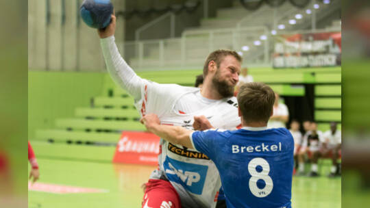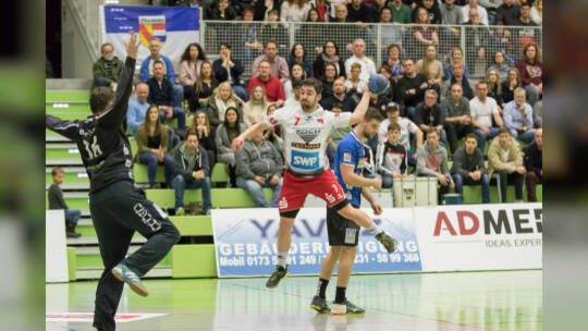 Die TGS Pforzheim hat am Samstag 31:30 gegen den VfL Pfullingen gewonnen. Im Anschluss an den Erfolg gaben Trainer Andrej Klimovets und Handball-Abteilungsleiter Wolfgang Taafel bekannt, dass der Coach zum Saisonende aufhört. Fotos: Becker