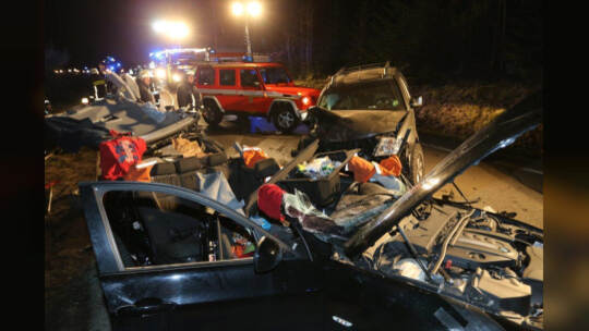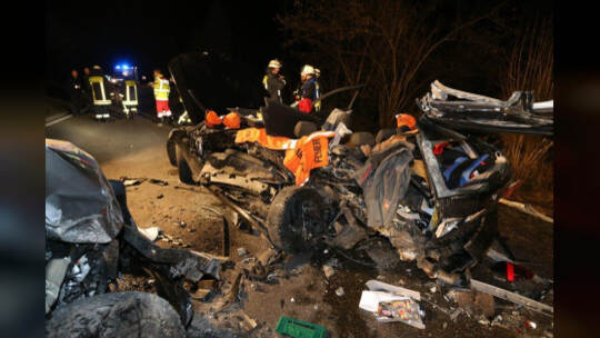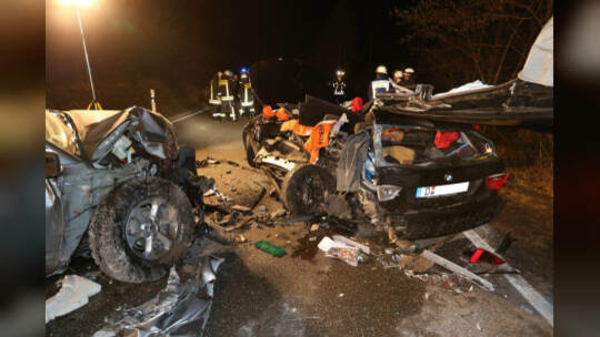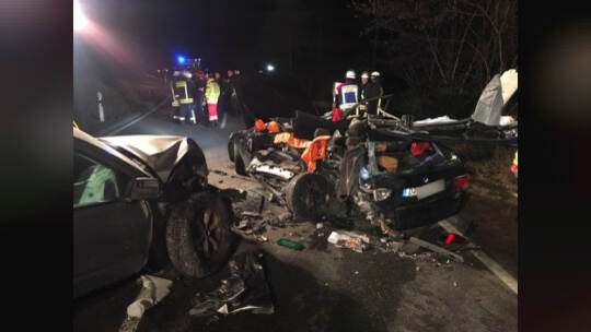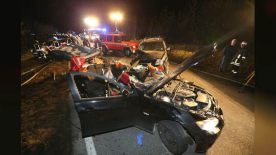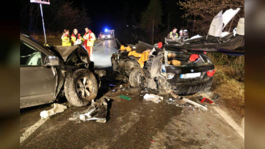 Bei einem heftigen Zusammenstoß von insgesamt drei Fahrzeugen auf der B294 bei Calmbach ist am Sonntagabend ein 32-jähriger BMW-Fahrer noch an der Unfallstelle verstorben. Mehrere Personen wurden außerdem schwer verletzt.