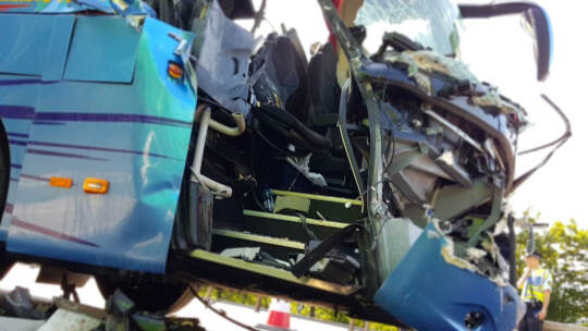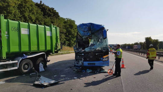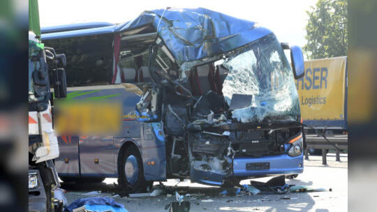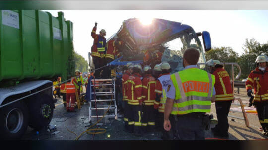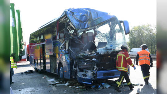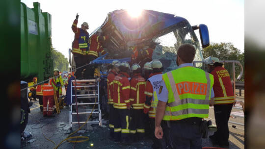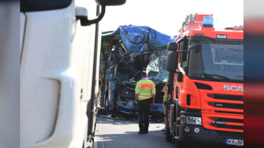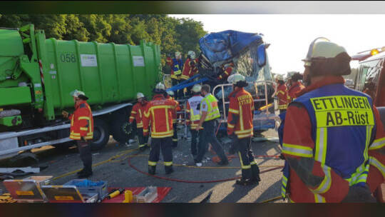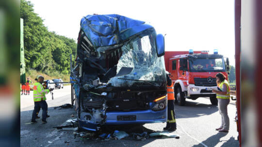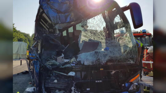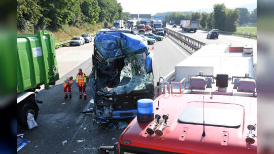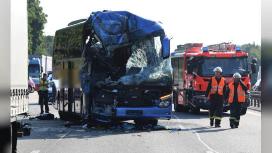Tragischer Busunfall auf A5: Ein Toter, 30 Verletzte