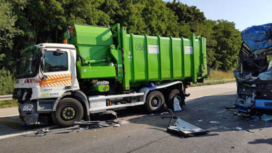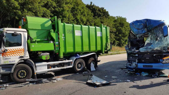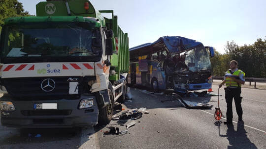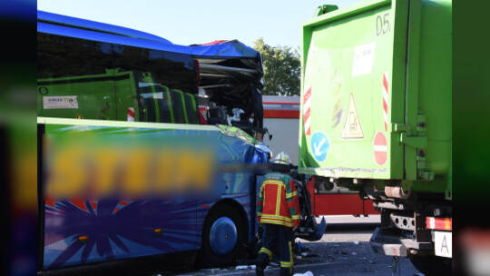 Der Bus muss mit großer Wucht auf den Müllwagen geprallt sein.