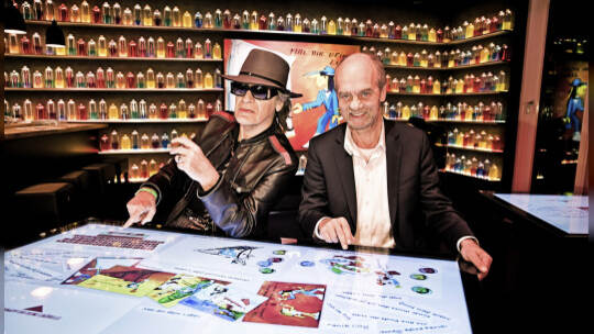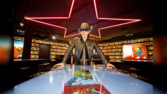 Der Trip in Udo Lindenbergs „Panik City“ beginnt im gläsernen Fahrstuhl. Wer den Weg des Rockstars vom Liftboy zum „Lindenwerk“ nachempfinden will, muss nach oben. Auf seiner liebsten „geilen Meile“ Reeperbahn hat der Musiker am Montagabend die „Udo Lindenberg Experience“ eröffnet. Fotos: Tine Acke