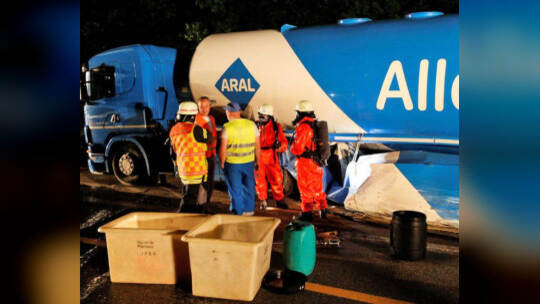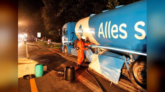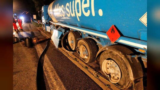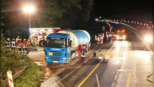 Unfall: Tanklaster überschwemmt A8 mit Super-Benzin