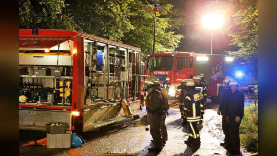 Eine wahrhaft brenzlige Situation beschäftigte ein Großaufgebot an Polizei und Feuerwehr. Auf der A8 am Nöttinger Hang ist ein Tanklastzug im Baustellenbereich gegen eine Betongleitwand gefahren und hat dabei die Autobahn mit Super-Benzin überschwemmt. Fotos: Ketterl