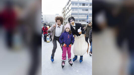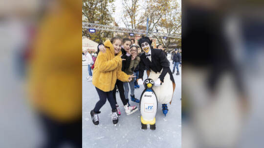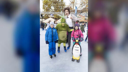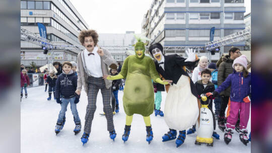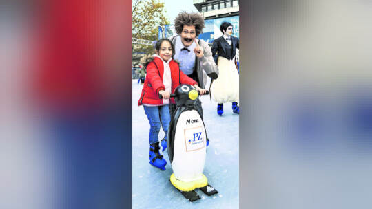 Die Darsteller von „Urmel aus dem Eis“ sind am Sonntagnachmittag zur großen Eisfläche in der Pforzheimer City gekommen und haben zahlreichen Kindern ein Lächeln ins Gesicht gezaubert.