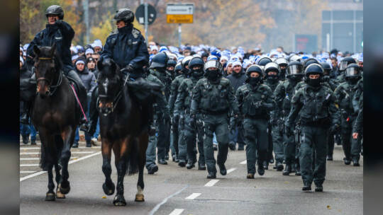 Die Polizei war mit rund 700 Beamten rund um das Spiel im Einsatz. dpaVfB Stuttgart und Karlsruher SC im DerbyDer VfB Stuttgart hat am Sonntagnachmittag das Derby gegen den Karlsruher SC gewonnen.Fotos: dpa24. November 2019