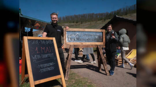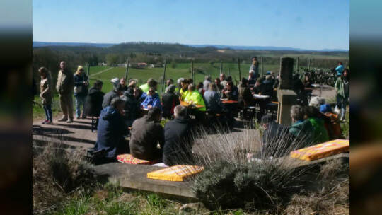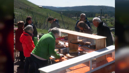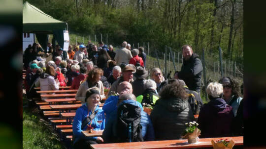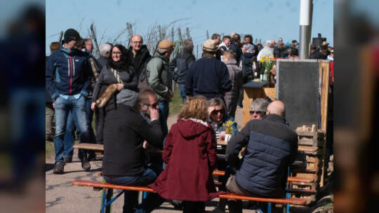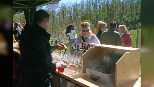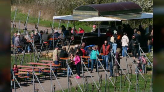 Zufriedene Winzer und zufriedene Gäste beim Diefenbacher Mandelblütenfest