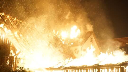 Bilder, die sich eingebrannt haben: In kürzester Zeit fressen sich die Flammen durch Schuppen, Scheune und Wohnhaus. Foto: Heiderose Manthey
