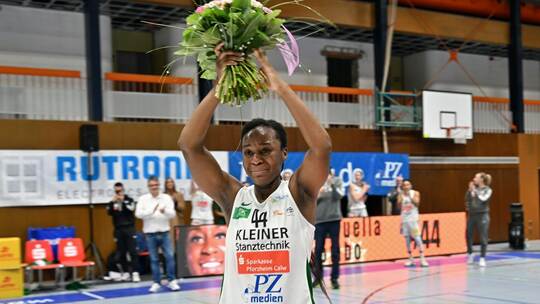 Keltern-Dietlingen. Standing Ovations der 280 begeisterten Zuschauer in Dietlingen, „Mayombo-Mayombo“-Rufe, aus dem Lautsprecher „Time to say Goodbye“ und ein Blumenstrauß aus den Händen ihres langjährigen Trainers Christian Hergenröther: Emotionaler hätte der Abschied von der Kapitänin des Basketball-Bundesligisten Rutronik Stars Keltern kaum sein können.