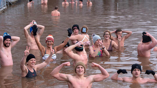 Zähne zusammenbeißen und los: 25 Minuten Eisbaden im Tiefen See in Maulbronn