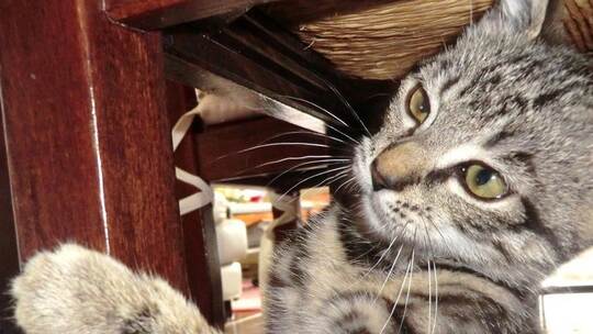 Mario Ludwig: Im Prinzip kommt dieser Moment alle Jahre wieder an Weihnachten, wenn die Katzen den Weihnachtsbaum derart verwüsten, dass man glaubt, hier sei ein Tornado durchgepflügt. Da gibt es bei denen einen Wettbewerb: Wer klettert am schnellsten auf die Spitze? Mit – mittlerweile unzerbrechlichen – Weihnachtsbaumkugeln können Katzen übrigens prima Fußball spielen.