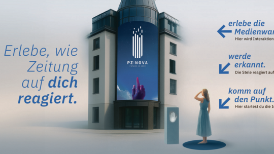PZ Nova öffnet den Dialog. Passanten werden zu Mitwirkenden durch Bewegung, Gesten oder Interaktion mit den gezeigten Inhalten. Man kann Schlagzeilen in Echtzeit erleben, Themen entdecken, die die Stadt gerade bewegen, oder selbst Impulse setzen, die sichtbar werden. Es geht darum, Nähe zu schaffen zwischen Menschen, Stadt und Medium. So zeigt die PZ, wie sie ihr Medium in die Zukunft führt – erlebbar, zugänglich und im Austausch mit den Menschen.