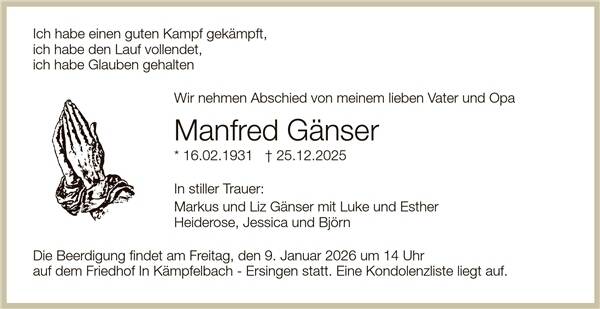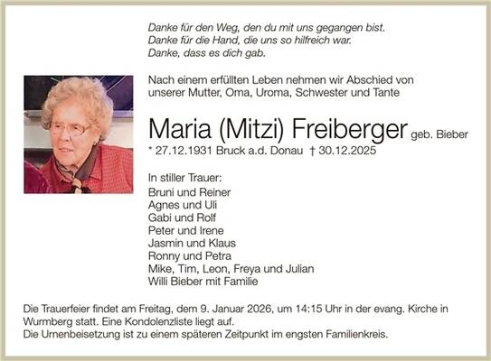 Familien / Traueranzeigen vom 03.01.2026