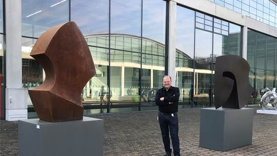 Die art Karlsruhe hat sich als internationale Kunstmesse etabliert. Mit etwas Suchen findet man auch Künstler aus Pforzheim und dem Enzkreis. Allen voran den renommierten Bildhauer René Dantes aus Pforzheim, der bei zwei Galerien und mit zwei Großskulpturen im Skulpturenpark vertreten ist. Er ist fast von Anfang an dabei und freut sich, dass die Messe immer weiter wächst und an Qualität gewinnt. „Die art ist eine Messe für Sammler wie für Neugierige“, bringt er auf den Punkt, was ihm besonders gefällt.