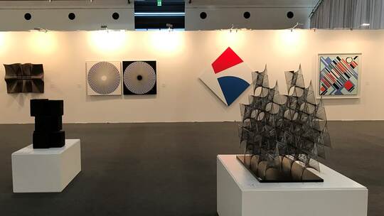 Das Bauhaus wird 100 Jahre alt, und dieses Jubiläum hat deutlichen Einfluss auf die diesjährige Messe. Das Bauhaus hat die Entwicklung der Konkreten Kunst mit beeinflusst, und so sind in der Sonderausstellung auch Künstler zu sehen, die direkte Anknüpfungspunkte haben, wie etwa Werke des Bauhaus-Meisters Josef Albers oder des Bauhaus-Schülers Max Bill.