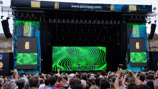 Das Zusammenwirken von Mensch und Maschine, eine Botschaft aus dem All, Musik im interstellaren Dialog als universelle Sprache der Welt – damit setzen Kraftwerk die Visionen um, mit denen sie in den 1970er-Jahren angetreten sind und technokratische Schlagworte wie „Computer“, „Autobahn“, „Radio-Aktivität“ und „Neonlicht“ in elektronische Musik verarbeiteten. Die Düsseldorfer sind Vorbilder und Blaupausen für unzählige Bands verschiedenster Richtungen: Coldplay bediente sich der Melodiefolge von „Computerliebe“ im Stadionrocker „Talk“, Jay-Z sampelte Sequenzen von „Die Mensch-Maschine“ für seine Hip-Hop-Nummer „Sunshine“ – in Stuttgart spielen Kraftwerk die Originale. Auch Klassiker der deutschen Avantgarde erklingen: „Die Roboter“ und „Das Model“, oder die mit Improvisationen angereicherte „Tour de France“-Trilogie und „Trans Europa Express“. Dieses Programm in faszinierender 3D-Akustik und -Optik perfektionieren Kraftwerk seit Jahren auf rar gesäten Konzerten. Die grünen Zahlenfolgen, grellen Radioaktivitätssignale, animierten Autobahnen und Züge entfalten in Stuttgart aber erst mit zunehmender Dunkelheit ihre volle Wirkung. Auch der dreidimensionale Klang stößt Open-Air an seine Grenzen. Dennoch haben die treibenden, pluckernden Sounds eine wunderbare räumliche Tiefe, tolle Bässe und bewegte Flächen.