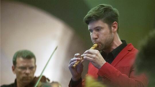 Heiter der Ton im Allegro Molto des Concerto RV 312, das Temmingh mit seiner Sopranblockflöte vortrug, traurig schön das Largo im Concerto RV 441 mit Altblockflöte. In den schnellen Ecksätzen des G-Dur-Konzertes RV 443 zelebrierte der famose Blockflötist ein funkensprühendes Feuerwerk. Über dem drunten tönenden Continuo-Ensemble zwitscherten hohe Flöten-Skalen und schäumten im Tempo-Rausch.