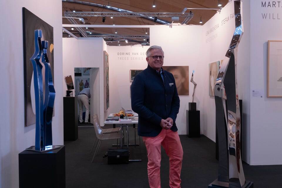 In Halle 2 haben sich die Galeristen Leander Rubrecht aus Wiesbaden und Marieke Severens aus Maastricht (Niederlande) zusammengetan. Mit Hilfe der beiden Standorte und einem regelmäßigen Austausch wollen sie den durch ihre Galerien vertretenen Künstlerinnen und Künstlern zu mehr Sichtbarkeit und Renommee verhelfen, wie Rubrecht erklärt. Gerade bei noch lebenden Künstlern habe manch potenzieller Sammler Zweifel, wie sich die Preise entwickeln. „Wenn zwei Galerien in einen Künstler investieren, kann man davon ausgehen: Das lohnt sich.“