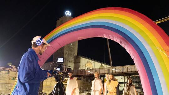 Fast punkig begleiten die Stuttgarter Philharmoniker diesen Weg an einigen Stellen, schräg bisweilen. Selbst Händel hat einen Auftritt: Seine Arie „Ombra mai fiu“ singt Sopranistin Josefin Feiler vor der Kulisse von Baukränen und Stahlgerüsten. Ein kurzweiliger Abend, von dem neben Anregungen für eine vielleicht bessere Welt vor allem die Bilder bleiben: die überdimensionale aufgeblasene Giraffe, die ihren Hals aus dem Bauloch reckt; die joggende Schauspielerin auf der Bau-Bühne; die Hobby-Gärtner der Urban Gardening Initiative; ein Hochzeitspaar, das sich unter einem aufgeblasenen Regenbogen das Ja-Wort gibt; ein Astronaut und das Märchen von den Elefanten beim Baustellenbesuch.