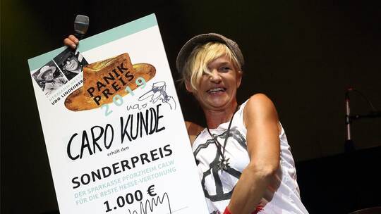 Was folgt? Fast drei dröge Stunden – mit ein bisschen Musik und viel Gerede. Dafür ist überwiegend der humorbefreite Arne Köster, Lindenbergs PR-Mann, zuständig, der ausführlichst die drei Preisträger der Hesse-Stiftung vorstellt. Da wird dann brav gesungen, zwischen Singer/Songwriter und Mainstream-Pop von der niedlichen Fee. aus Frankfurt und dem heimatverbundenen Sebel aus Recklinghausen, jeweils mit Band. Alles nette junge Leute, alle brav und gesittet – und alle eine Spur zu langweilig. Nichts wirklich Neues, nichts wirklich Mitreißendes, während der Regen immer kälter den Rücken hinunter rinnt. Sparkassen-Preisträgerin Caro Kunde hat ein Hesse-Gedicht vertont. Welches? Keine Ahnung. Kein Wort zu verstehen, dafür viel Gefuchtel mit den Extremitäten.