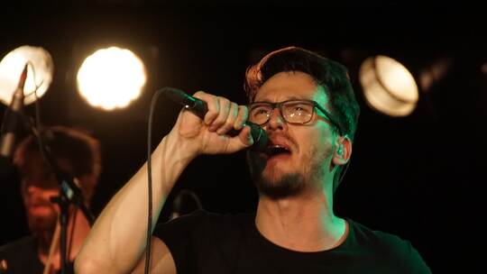 „Böller“, „Polyester“ und „Hotel Mama“ heißen einige der Lieder, die die siebenköpfige Band ihrem Publikum mit Wucht entgegenschmettert. Seit 2012 existiert sie bereits. Die Musiker kommen aus Karlsruhe und spielen eigenen Angaben zufolge auch oft in Frankreich. Auf der Bühne geben sie alles, im Publikum treffen sie mit ihren Liedern voll ins Schwarze. Und der Boden im Kupferdächle bebt.