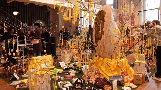 Pforzheim. Eigentlich ist es nicht nur „Das Gelbe vom Ei“, das beim Ostermarkt der Kunstinitiative Pforzheim (kip) im Kulturhaus Osterfeld am Wochenende angeboten wird, sondern gleich auch noch das Weiße dazu. Alles, was das Herz begehrt, und was man (nicht) unbedingt brauchen könnte, gibt es da. Von Textiler Gestaltung, für die die Bezeichnung Kleidung viel zu profan ist, über Schmuck aus edlem Material, aber auch aus Abfallplastik und Papier sowie Designobjekten und Dekorationsartikeln bis zu Papeterie, Malerei und Skulptur. Die 55 Ausstellerinnen und Aussteller haben sich auf allen vier Etagen des Kulturhauses sowie dem Innenhof ausgebreitet, und das ist auch nötig, denn bereits am Samstagnachmittag ist der Andrang gewaltig.