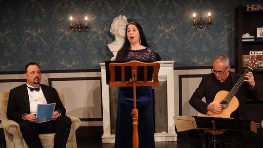 Pforzheim. Zu einer heiteren, kurzweiligen Soirée hatte die Löbliche Singergesellschaft am Freitag ins Kulturhaus Osterfeld eingeladen. Der Rundfunkjournalist und Autor Georg C. Peter, die Konzert- und Oratoriensängerin Regina Grönegreß und der Gitarrist Andrea Sciloa-König präsentierten im Studio eine musikalische Lesung unter dem Titel „Gereimt, gesungen und gezupft – Musikalisch eingerahmte heitere historische Heldenepen von Georg C. Peter“. Leider war das unterhaltsame Kleinkunst-Kabinettstückchen auf einer heimeligen Wohnzimmer-Bühne nur äußerst spärlich besucht.