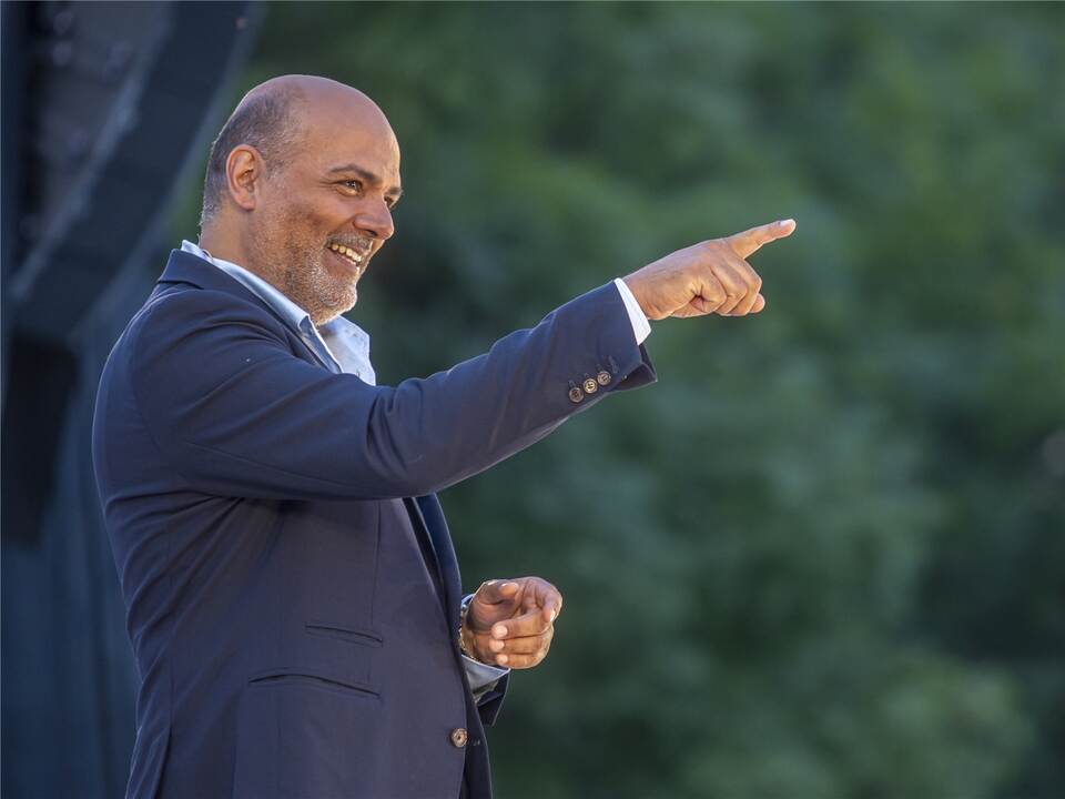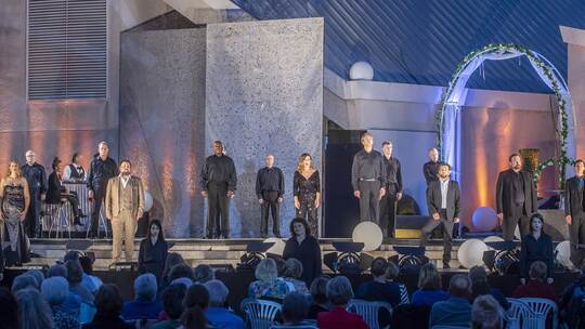 Sopranistin Stamatia Gerothanasi überzeugte als „Lustige Witwe“, und Lilian Huynen trug den Song „In Weil der Stadt bei der Kirchweih“ aus der Musicaloper „Katharina Kepler“ vor, die vergangene Woche uraufgeführt worden war. Auch Beethoven und Mozart standen auf dem Programm, so etwa Auszüge aus „Fidelio“ und „Don Giovanni“, der als Neuproduktion am 17. September die kommende Spielzeit eröffnen wird. Abwechselnd gaben sich bei der musikalischen Leitung Florian Erdl, Robin Davis und Philipp Haag den Taktstock in die Hand. Der eine war kommissarischer Generalmusikdirektor, der andere ist der amtierende. Und der dritte ist Studienleiter mit Dirigierverpflichtung. Alle haben das Aufführungswagnis mit der Badischen Philharmonie Pforzheim hervorragend gemeistert. Denn während das Orchester, dessen Sound über die Anlage transportiert wurde, drinnen im Theater musizierte, wurde das Dirigat draußen per Videoleinwand zugeschaltet.