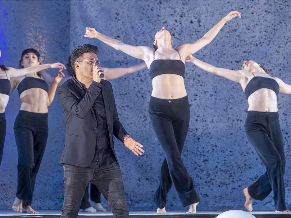 Auch Chor und Ballett hatten ihre bejubelten Auftritte. Beim Tanz umschlangen und räkelten sich Mirko Ingrao und Selene Martello zur Sinfonik von Johannes Brahms. Das Ballett „Glaube Liebe Hoffnung“ wird ebenfalls ab Herbst zu sehen sein. Übers Programm hinaus gab es Überraschungen mit Pop und Jazz, und Frank Nimsgern präsentierten Songs aus der Ballett-Revue „Freedom“, und als Gipfel oben drauf gab es später noch ein E-Gitarren-Solo oben auf dem Dach.