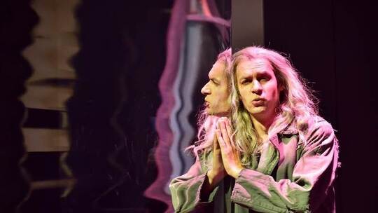 Schönlebers Inszenierung hat sich den Spiegel als Leitsymbol ausgesucht. Auf der immer etwas halbprofessionell wirkenden Bühne der Trinkhalle stehen sie in stetiger Wandlung herum, mal spiegelnd, mal durchlässig. Kann Sigismondo zwischen Trug und Wahrheit unterscheiden, soll das andeuten. Diese Bilderwelt ist kein großer Wurf aber doch von einer gewissen Poesie, die durch die fantasy-artigen Kostüme (Claudia Möbius) verstärkt wird. Das tut keinem weh und fügt sich in der Verbindung mit der lebendigen Personenregie zu einem doch angenehmen Gesamtkonzept.