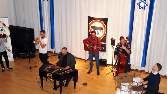 Pforzheim. „Es ist unmöglich, jetzt nicht über Israel und Gaza zu sprechen“, beginnt Rami Suliman, der Vorstandsvorsitzende der Jüdischen Gemeinde, seine Anmoderation des Konzertabends mit der Cimbaliband aus Budapest in der Pforzheimer Synagoge. Er macht die Betroffenheit seiner eigenen Familie deutlich und schildert einige der Gräueltaten des Hamas-Überfalls – gebrandschatzte Häuser, getötete Kinder –, wie auch die pro-palästinensischen Demonstrationen in Berlin und anderen deutschen Großstädten. Er betont aber: „Wir haben in Pforzheim ein sehr gutes Verhältnis zu allen Religionen“. Die Gewalttäter seien, so Suliman weiter, „keine Muslime, sondern schlicht Terroristen“. Nach ihm ergreift Dora Bettinger-Bognar, Vorsitzende der Deutsch-Ungarischen Gesellschaft Pforzheim-Enzkreis, als Kooperationspartner des Konzerts kurz das Wort und dankt Suliman für das mutige Festhalten am Konzert.