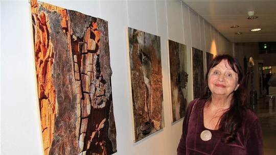 Faszinierend auch die sechs Collagen, bei denen Pflanzenpapiere aus Moos oder Birkenrinde auf Fotografien deutliche Strukturen hinterlassen. Was Bild und was Naturmaterial ist, wird nicht sofort ersichtlich: „Es soll irritieren“, sagt die 74-jährige Künstlerin, die auch Denkmäler aus dem Raum Neuenbürg nachgebildet hat. Landrat Karl Röckinger sprach – in Anspielung auf Bürgers Nachname, der für Qualität bürge – von einer „schönen Form der Bürgerbeteiligung“.
