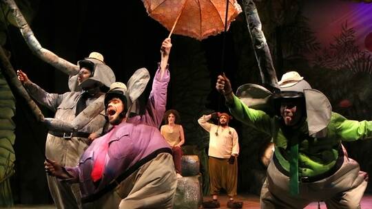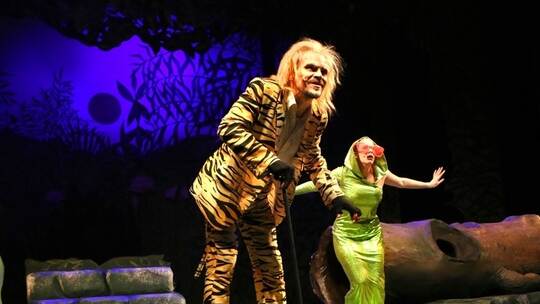 Mit tosendem Applaus wurde am Dienstag die Premiere des Kinderstücks zur Winterzeit gefeiert, das nach den Erzählungen von Rudyard Kipling als Musical auf die Bühne kam, mit launiger Musik von Marc Schubring und einem Libretto von Juliana Wulfgramm und Andreas Lachnit. Ein bisschen dauert es aber, bis der Funke überspringt. Noch etwas zäh wirken die ersten Dialoge. Die Lieder sind durchweg kaum zu verstehen, so laut dröhnt die eingespielte Musik dazu.