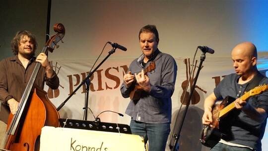 „Sie können ruhig weiter vorrücken“, wendet sich Prisma-Chef Hese Schröter lächelnd an die Hinterbänkler unter den Besuchern, „die Band macht Kammer-Pop“. Das passt durchaus; und bereits damit wäre „Konrads Spezialorchester“ aus Laubach an der Lein (Ostalbkreis) in guter, hörenswerter Gesellschaft: Sascha Bendix aus Freiburg bürstet Pop-Hits in ähnlicher Weise gegen den Strich. Jedoch verbinden Konrads drei Mannen die ausgesuchten Cover-Songs meist mit eigenen deutschen Texten – oder sie suchen für Kontrabass und Ukulele schon im Original deutsche Titel, wie „Heut nacht“ von Spliff. Ende des ersten Sets mixen die Laubacher Spezialisten ein tanzbares Medley aus Kraftwerks „Model“, Grauzones „Eisbär“, Metallicas getragenem Song „Nothing Else Matters“ und Joachim Witts „Goldenem Reiter“. Auch das geht tatsächlich – mit humorigen Ansagen und Lust am Sprachwitz gewürzt. Würden Kruse, Kante und Donsen nur die sporadischen Füllsel aus Scat-Gesang ersatzlos streichen, es wäre ein rundum perfekter Konzertabend.
