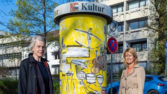 Künstler bemalen Litfaßsäulen des Pforzheimer Kulturrats
