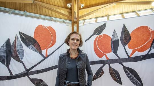 Pforzheim-Hohenwart. Farbenfroh, konstruktiv und herrlich in die Frühlingszeit passend: So wirken die Arbeiten, die die weitläufigen Flure des Hohenwart Forums beleben. An der Ausstellung von Martina Geist erfreuen können sich – abgesehen von der Eröffnung am Sonntag, 18. April, im Rahmen des Art-Gottesdiensts – wegen der Corona-Lage vorerst nur die Seminargäste des Tagungszentrums. Die Künstlerin und die Kuratorin Krisztina Jütten hoffen jedoch, bei sinkenden Inzidenzen öffnen zu können. Früchte, Blätter, Zweige und Ranken: Oft bezieht Martina Geist ihre Bildmotive aus der Natur und stellt sie in abstrahierten Grundformen dar.