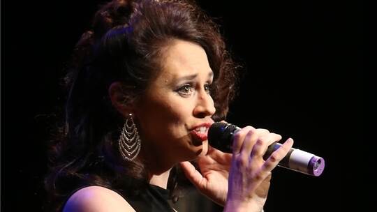 Gleich beim Opening „Defying Gravity“ aus „Wicked“ füllten Frank Nimsgern und seine exzellente Band mit aufgedreht dröhnendem Sound den Raum im Großen Haus des Stadttheaters. Sängerin Femke Soetenga setzte sich in schwarzer Theaterkluft (Marlene-Hose und ärmelloses Shirt) flott in Szene, hatte aber Mühe, sich mit ihrer Stimme gegen Keyboard, Bass, Drums und vor allem gegen die elektronisch verstärkte Melodie-Gitarre Nimsgerns, der das Programm arrangierte, kraftvoll zu behaupten.