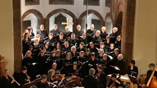 Die Vokalisten – weitgehend Mitglieder des renommierten SWR-Vokalensembles – überzeugten mit verständlicher Artikulation und plastisch ausgeformten Texten. Allen voran der exzellente Tenor Rüdiger Linn, der seinen umfangreichen rezitativischen Part als Evangelist mit deklamatorischer Klarheit, aber auch mit fokussierter Ausdruckskraft (Recitativo Nr. 46a, „Mein Gott, mein Gott!“) bravourös bewältigte. Überaus klangschön konnte sich die Altistin Pauline Stöhr in Szene setzen. Ihr Arioso „Gläubige Seelen“ (Nr. 31b) leuchtete in (für einen Alt) erstaunlichen Höhen, die Klage der Maria (Nr. 40a) entfaltete sich mit dunkel-düsterem Timbre. Bariton Bernhard Hartmann beeindruckte als Jesus mit einigen klangsatten Passagen und stattete den kommentierenden Hauptmann am Passionsende (Nr. 50a) mit kerniger Kraft aus. Kirsten Drope gefiel in den „Tochter Zion“-Arias mit lyrisch hellen Klangbögen, in rezitativischen Abschnitten blieb ihr Sopran allerdings dünn. Kord Michaelis leitete die Aufführung gewohnt professionell, motivierend und abwechslungsreich in den Tempi, die öfters zügig und forsch ausfielen. Wegen der vergleichsweise trockenen Akustik in der voll besetzten Altstadtkirche fehlten jeglicher Pomp von Hall und Schall.