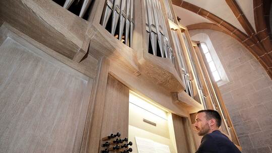 Und es wurde keine zaghafte Verlegenheitsveranstaltung. Sondern ein meisterlicher, musikalisch virtuoser, mit Furor intonierter Konzertabend, der dynamische Klangbilder und eine üppige Farbenpalette im Angebot hatte. Das Programm präsentierte einen veritablen Querschnitt durch die traditionelle Orgelmusik-Literatur. Eberhardt stellte Felix Mendelssohns Sonate Nr.1 in f-Moll (Op.65/1) wie eine Kreuzung aus lutherischer und beethovenscher Musikalität vor: Fein umspielt die Choralmelodie „Was mein Gott will, das g’scheh allzeit“, voluminös ausformuliert die akkordischen Abschnitte im ersten Satz („Allegro moderato serioso“). Das „Adagio“ folgte mit sehr zarter, romantisch-poetischer Tonsprache. Der dritte Satz diente als Auftakt zum rauschhaft attackierenden Fortissimo-Finale. Georg Böhms Choralpartita über „Wer nur den lieben Gott lässt walten“ deutete mit ihren differenziert registrierten Variationen auf seinen berühmten Schüler Johann Sebastian Bach voraus. Dessen mit Verve interpretierte Triosonate Nr. 5 (BWV 529), eine Komposition mit erheblichem spieltechnischem Anspruch, strahlte in den rasanten Ecksätzen in fröhlichem C-Dur, nur der langsame „Largo“-Mittelsatz zeigte auch dunkel gedämpfte Moll-Passagen.