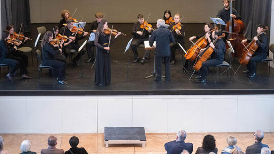 Mühlacker. Ein glanzvoller Höhepunkt begeisterte beim Neujahrskonzert von Peter Wallingers sueddeutscher kammersinfonie im Mühlacker Uhlandbau die Zuhörer: Ohne Imponiergehabe, aber mit wunder-barer Klarheit und unprätentiöser Virtuosität musizierte die junge Geigerin Maryana Osipova und präsentierte Mendelssohn Bartholdys Violinkonzert d-Moll mit schlankem Ton geradezu freudig beschwingt. Das Frühwerk des dreizehnjährigen Wunderknaben leuchtete im Kopfsatz mit einem rhythmischen Motiv, das an Johann Sebastian Bach erinnerte, berührte im Andante mit dem lyrischen Zauber getragener Violin-Soli und mündete tänzerisch rasant in das finale Allegro ein. Das Orchester begleitete unter Wallingers Leitung mit kammermusikalisch federnder Agilität.