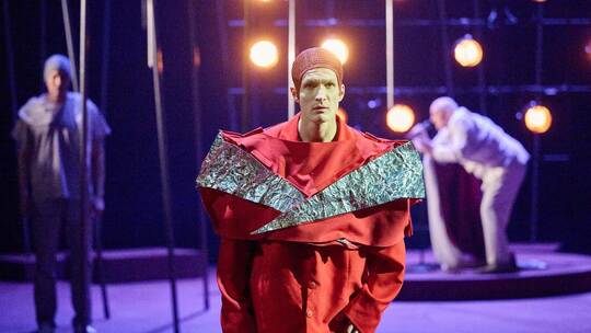Pforzheim. Man hatte keine Ahnung, was kommt – ähnlich wie „Parzival“ im gleichnamigen Stück von Lukas Bärfuss, das im Pforzheimer Theater Premiere feierte. Der Schweizer Autor war 2003 nach furiosen Aufführungen seines Dramas „Die sexuellen Neurosen unserer Eltern“ von der Zeitschrift „Theater heute“ zum „Nachwuchsdramatiker des Jahres“ hochgejubelt worden. 2018 bezeichnete freilich dieselbe Kritik sein für das Mannheimer Nationaltheater geschriebenes Auftragswerk „Der Elefantengeist“ über Helmut Kohl als „schäbiges, witzlos zusammengezimmertes Machwerk“. Sein nach Wolfram von Eschenbachs mittelhochdeutschem Versroman „Parzival“ gearbeitetes Schauspiel, zeitlich genau in der Mitte 2010 in Hannover uraufgeführt, ist kein großes Theater, aber zumindest ein großer archaischer Stoff, den Bärfuss dank seiner überaus originellen Bearbeitung für uns Heutige, für das Hier und Jetzt öffnet. Davon konnte man sich in Jasper Brandis‘ gelungener Pforzheimer Inszenierung überzeugen.
