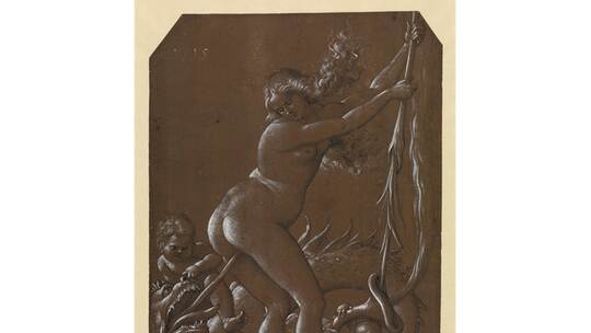 „Unheilig mag noch die diskreteste Bezeichnung für Baldungs außergewöhnliche Darstellung einer vermeintlichen Hexe sein“, schreibt Julia Carrasco im Katalogbeitrag über die Zeichnung „Junge Hexe und fischgestaltiger Drache“ von 1515. Eher pornografisch mutet das an, was die kurvenreiche, nackte Frau und der Drache hier treiben. Und es lässt eine Vielzahl von Interpretationsmöglichkeiten zu. „Man muss davon ausgehen, dass diese Zeichnung für einen elitären Kreis hochgebildeter Männer bestimmt war, die sich dieses Kabinettstückchen leisteten, die Nacktheit mit Vergnügen betrachteten, und sich an der Doppeldeutigkeit erfreuten“, sagt Claudia Baumbusch.