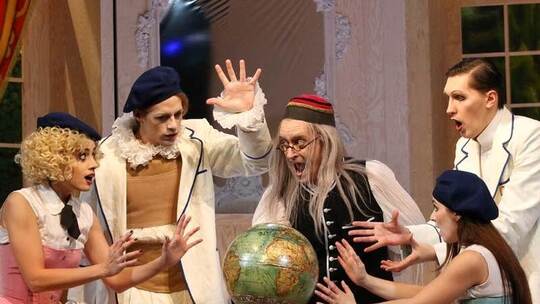 Nichts ist, wie es war. Vergeblich sucht er nach dem Guten und Gerechten – und nach seiner heiß geliebten Cunégonde. Am Ende ist er um die ganze Welt gereist, muss enttäuscht eingestehen, dass es kein Eden gibt, und auch keine unschuldige Angebetete. Leonard Bernsteins komische Oper „Candide“, die im Theater Pforzheim Premiere feierte, basiert auf der Satire „Candide oder der Optimismus“ von Voltaire – einer bitterbösen, philosophischen Abrechnung mit der Weltanschauung von Leibnitz, der sich im Stück hinter dem Lehrer Pangloss versteckt.