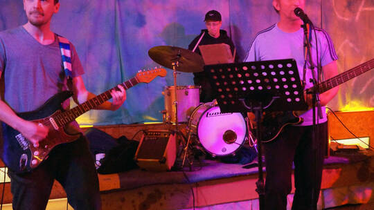 Pforzheim. Lebensfreude, klares gesellschaftliches Engagement und freche, aufrüttelnde Musik fernab des Mainstreams: Heinz Ratz, Bassist, Sänger und Bandleader von Strom & Wasser gastierte am Samstagabend mit seinem Quartett im „Café Exil“. Mit von der Partie: Stefan Littmann (Keyboards, Backing Vocals), Tobi Müller (Gitarre) und Luca Seitz am Schlagzeug.