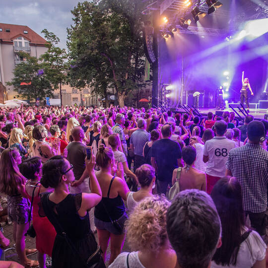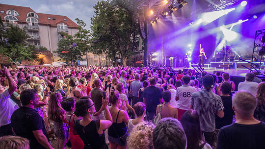 Nach dem Auftritt im Kulturhaus-Hof erscheint die Kritik aber unberechtigt. Denn der ist stark, bietet mehr Ecken und Kanten, geschickt aufgebaut mit Balladen und Club-Nummern. Mit spannenden Brüchen, Rock- und Rap-Einlagen sowie Tempowechseln spielen die Musiker einen satten Sound: bis zu zehnminütige Live-Versionen, die immer wieder Überraschungen bieten. Da startet ein Titel mal im Trip-Hop-Beat, um in tanzbares Uptempo oder Dubstep („Ich bin ich“) zu münden. Diese zwei Seiten zeigt auch das 2018 erschienene Album. Und mal ehrlich: Liebhaber deutschen Pops brauchen nicht in jedem Song eine politische Botschaft. Denn es tut gut, mal dem Alltag zu entfliehen. Die nach dem Hermann-Hesse-Roman benannte Band hilft dabei. Ganze Familien sind gekommen, um zu feiern. Die Stimmung ist entspannt. Eine Mutter trägt ihr Töchterchen auf dem Rücken, sie wiegen sich im Takt. Das Konzert macht Laune.