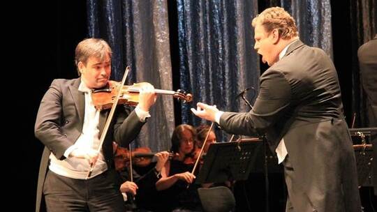 Großartige Arien und Ouvertüren aus Opern der Anfangszeit wie „Der Freischütz“ von Carl Maria von Weber, aber auch aus Inszenierungen der vergangenen Spielzeit wie Rusalka von Antonín Dvorák kommen noch einmal zu Gehör. 50 Stücke haben die beiden insgesamt realisiert. „Danke für die wundervollen Inszenierungen, das Vertrauen und die immerwährende Menschlichkeit“, bedankt sich die Sopranistin Franziska Tiedtke im Namen des Ensembles bei Widder und Lell, die mit roten Rosen und stehendem Applaus überschüttet werden. Auch die Dirigenten, Martin Hannus und Diethard Stephan Haupt, werden mit anerkennenden Worten verabschiedet. Unter der musikalischen Gesamtleitung von Hannus, der mit seinem Studium der Forstwirtschaft ein neues Metier betreten wird, erklingen zum Auftakt bekannte Melodien aus Bizets „Carmen“, die die Badische Philharmonie Pforzheim und der von Salome Tendies einstudierte Opern- und Extrachor zum Besten gibt. Der rotschwarze Dresscode bestimmt die Optik des ganzen Abends, so auch den Auftritt des Kinderchors, der zu den großen Erfolgen des Hauses zählt. Mit Geschrei stürmen die Nachwuchssänger die Bühne, und beglücken Bettina Lell und Reto Rosin mit Rosen, der mit der Arie „Komm’ Zigany“ glänzt. Immer lebhafter tanzt der Tenor bei der Arie dabei an der Seite von „Zigeunergeiger“ Attila Barta, reißt die Zuschauer mit und fällt vor ihnen sogar auf die Knie.