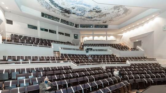 Vielleicht fällt es schwer, angesichts der Leere im Publikum, angesichts des Fehlens menschlicher Wärme und der Reaktionen des Gegenübers die großen Gefühle auf der Bühne zu entfalten. Nicolas Martin ist ein überzeugender Franz Huchel, der die Entwicklung von jugendlicher Naivität zum kämpferischen, selbstständigen Trafikanten nachvollziehbar macht. Eindringliche Brief-Dialoge führt er mit seiner Mutter, der Michaela Fent in ihrem Schwanken zwischen Kontrolle und Loslassen fein austarierte Züge verleiht. Mit Jens Peter als Professor Freud und Lars Fabian als Otto Trsnjek stehen zwei gestandene Männer auf der Bühne. Überzeugend auch Johanna Miller als quirlige Anezka. In eine Vielzahl von Rollen, die oft als Parodien angelegt sind, schlüpfen Bernhard Meindl, David Meyer und Myriam Rossbach. Der Beifall der fünf Zuschauer verhallte im großen Bühnenraum.